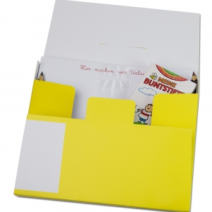 Artikel-Nr: HOP16.10110.00Mit unserem Postkarten-Set können Kinder ihre persönlichen Urlaubseindrücke festhalten und gestalten. Die 10 Postkarten im DIN A6-Format bieten eine frei ausmalbare Vorder- und Rückseite und laden zum Malen und Zeichnen ein. Ergänzt werden diese durch eine praktische 6er-Buntstiftbox in einer ansprechend gestalteten Kartonverpackung, sowie einer hochwertig gestalteten Mappe. Die Varianten: • Standardausführung: Ab Lager lieferbar, optional mit zusätzlichem Logoeindruck. • Individuelle Gestaltung: Ab 500 Stück mit personalisierten Außenseiten für ein einzigartiges Design.