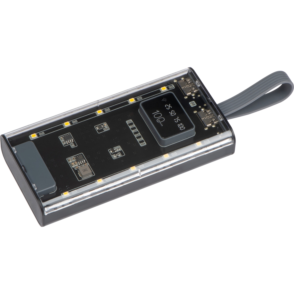 Artikel-Nr: EAG396166Powerbank mit 10.000 mAh, drei Anschlüssen (USB1/OUT, Type-c / IN, USB2/OUT), Ladestandsanzeige und Trageschlaufe. Ihre Werbung drucken wir auf die Vorderseite.
