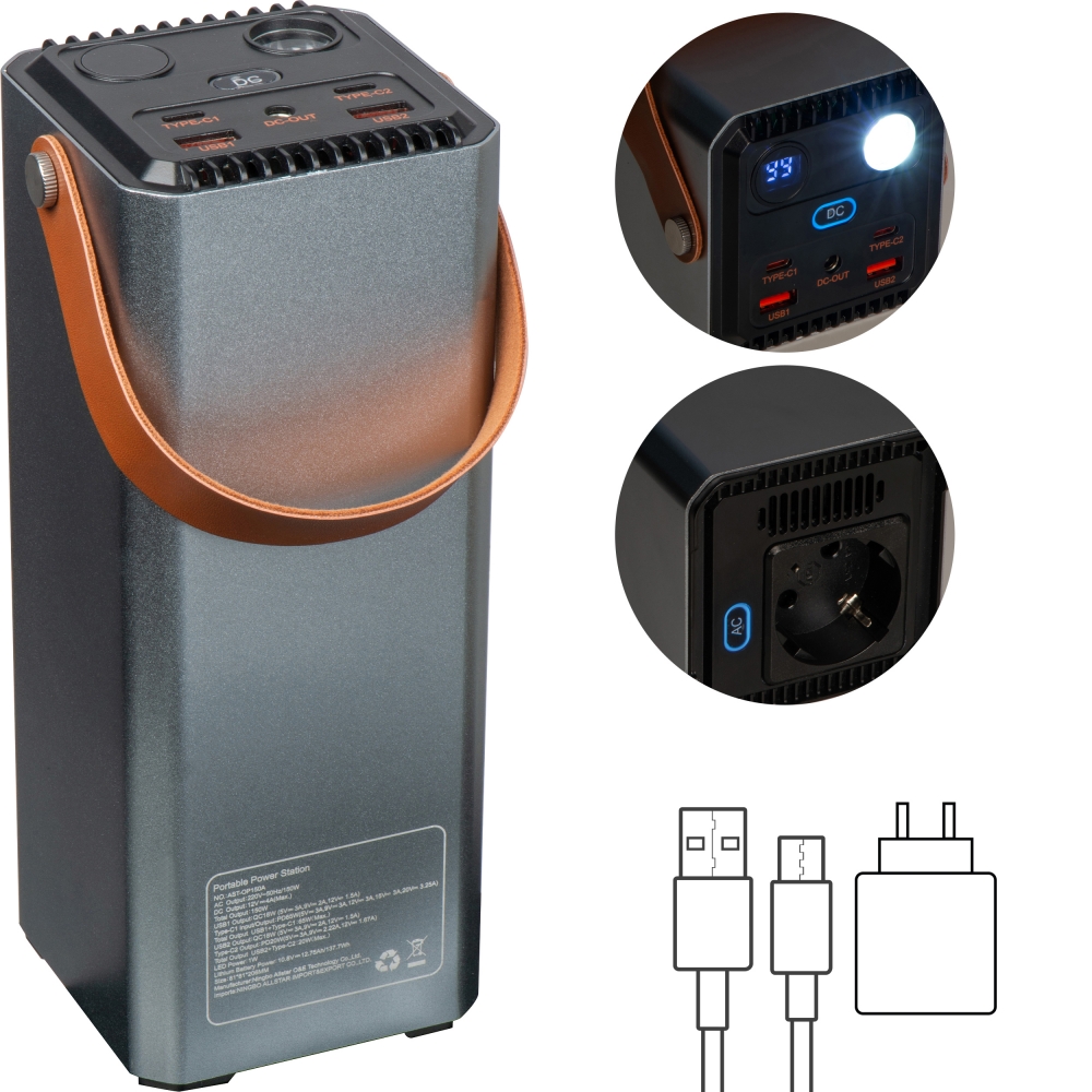 Artikel-Nr: MCM3390977Diese Powerbank aus Aluminium ist mit seiner 39.000 mAh Batterie ein echtes Kraftwerk. Mit Netzstecker Output (max. 150 Watt) und USB- und C-Type In- und Output. Ihre Werbung gravieren wir auf die Powerbank.