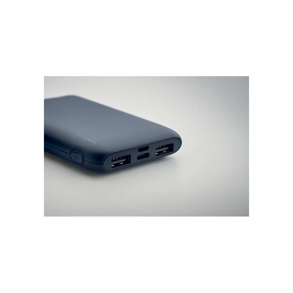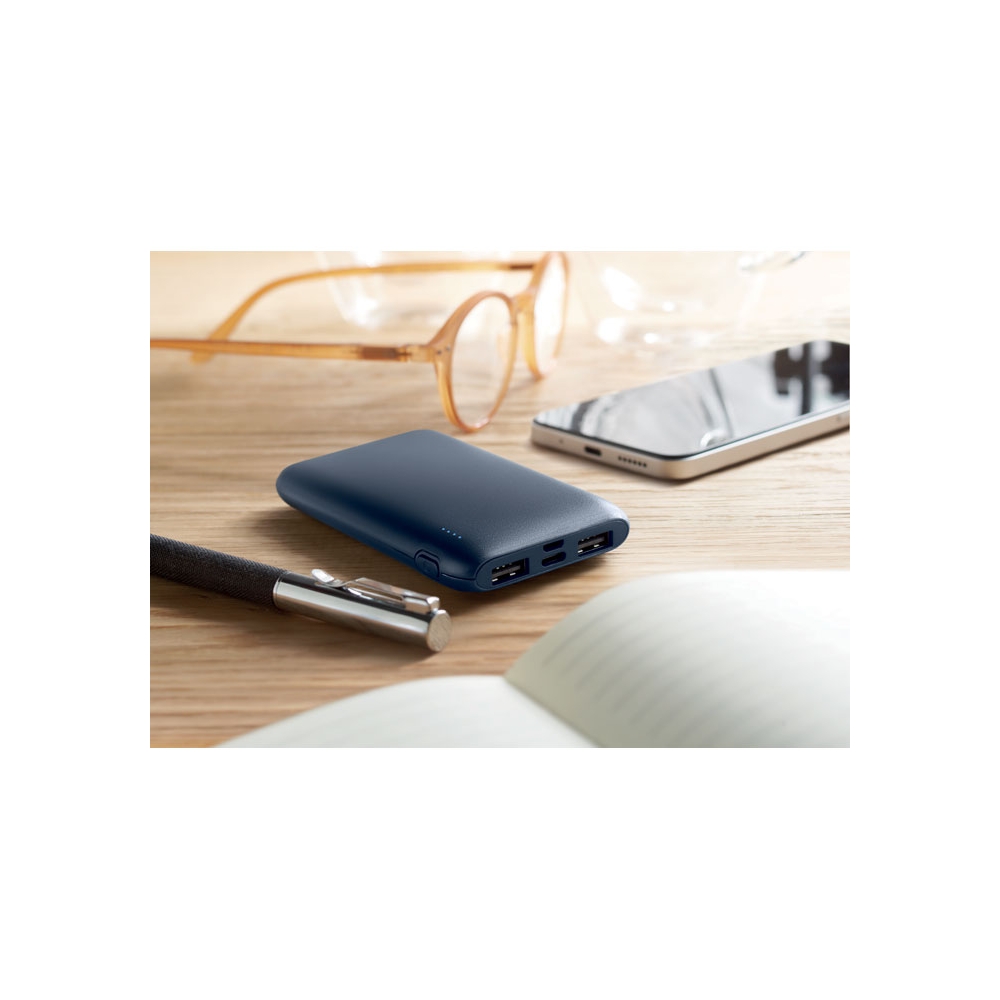Artikel-Nr: OCBMO2279-85Powerbank 5000 mAh aus recyceltem ABS. Geeignet zum Betrieb von Smartphones. Ausgang: 1 x Typ-C, 2 x Typ-A & 1 x Typ-B. Eingang: 2-in-1 Typ C & Typ-A.