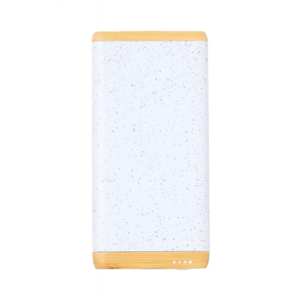 Artikel-Nr: AND734272-01USB Powerbank aus Bambus und ökologischem Weizenstroh-Kunststoff mit 5000 mAh Akku, 1 USB und 1 USB-C Ladeports und USB-C Eingangsport. Inkl. USB-Ladekabel.