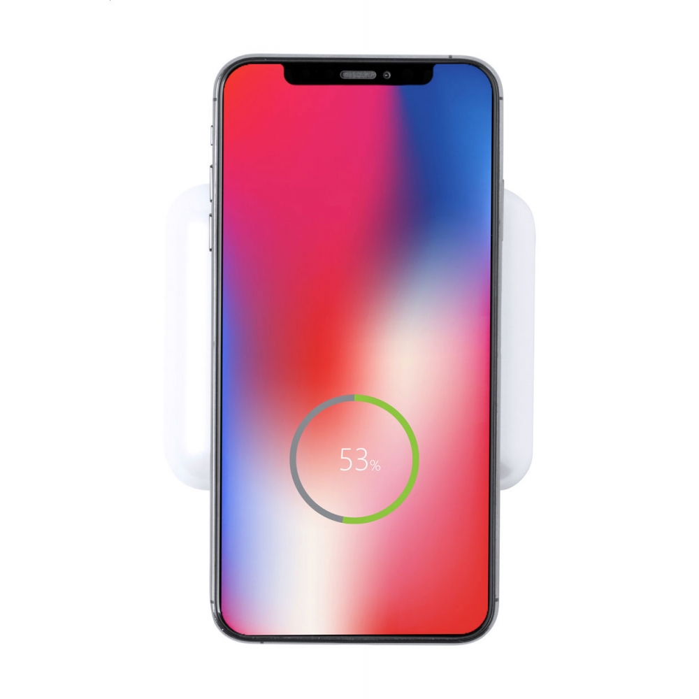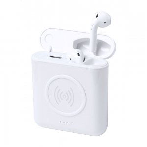 Artikel-Nr: AND721402-01USB-Powerbank aus Kunststoff mit 5000-mAh-Akku, integriertem kabellosen Ladegerät (5 W) und True Wireless Stereo (TWS)-Ohrhörer mit Freisprechfunktion. USB-C-Eingangsanschluss. Inklusive USB-Ladekabel.