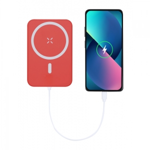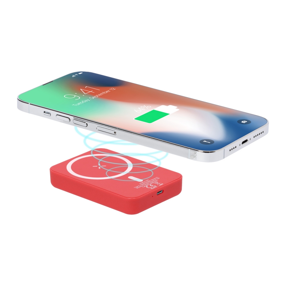 Artikel-Nr: AND735538-05Powerbank aus ABS-Kunststoff mit 5000 mAh Akku und eingebautem magnetischem Wireless-Charger (5W). Mit USB-C-Eingang und Ladeanschluss. Kompatibel mit iPhone® 12 oder neuer. Inklusive USB-Ladekabel.