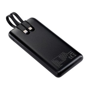 Artikel-Nr: RFS52623-BKEntdecken Sie die REEVES-PULSEXPRESS 10 Powerbank – ein Kraftpaket für hohe Ansprüche. Ausgestattet mit einer beeindruckenden Kapazität von 10000 mAh, sorgt sie dafür, dass Ihre Geräte stets einsatzbereit sind, egal wo Sie sind. Das Display liefert Ihnen den genauen Ladestand in Prozent, und durch den seitlichen Einschalter ist die Bedienung ein Kinderspiel. Die integrierten Kabel sind kompatibel sowohl mit USB-C als auch mit Apple® 8-Pin. Das macht das Laden verschiedenster Mobilgeräte möglich. Die schnelle 20 Watt Ausgangsleistung gepaart mit einer smarten Autoabschaltung nach 30 Sekunden Inaktivität gewährleistet effizientes und energiesparendes Laden. Und das alles in einem edlen, schwarzen Gehäuse aus recyceltem ABS Kunststoff. Die REEVES-PULSEXPRESS 10 – die ultimative Energiequelle für eine dynamische Zielgruppe. Die Werbeanbringung erfolgt auf der gut sichtbaren Fläche des Gerätes mittels Tampondruck oder UV-Druck. Die Powerbank ist mit Überspannungs-, Überhitzungs- und Kurzschlussschutz ausgestattet. Apple® is a registered trademark of Apple Inc., registered in the US and other countries.