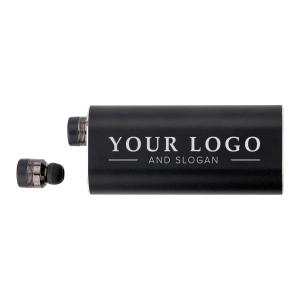Artikel-Nr: GIV8163001Powerbank 'Listen Up' mit zwei Wireless-Kopfhörern inkl. Ladekabel (USB und Micro-USB). Die Li-Ion Batterie hat eine Kapazität von 4000 mAh. Input 5V/0.9A (Micro-USB), Output 5V/1A (USB).