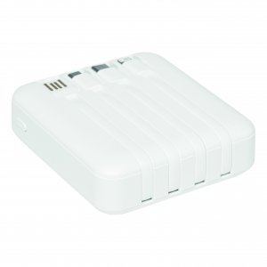 Artikel-Nr: INP56-1107384Powerbank PRECIOUS: geeignet für Smartphones und USB-betriebene Geräte, inkl. 4 integrierter Ladekabel auf der Rückseite (USB Typ C, Micro-USB, Lightning, USB Typ A), mit Ladestandanzeige (25 / 50 / 75 / 100 %), Ein- und Ausschalter, je 1 Typ C und Micro-USB Eingang und 2 USB Typ A Ausgänge, Eingangsleistung: 5V/2A, Ausgangsleistung: 5V/2A (max.), Kapazität: 5.000 mAh, leistungsstarker Lithium-Akku, Taschenlampe mit 2 weißen LED, in Box