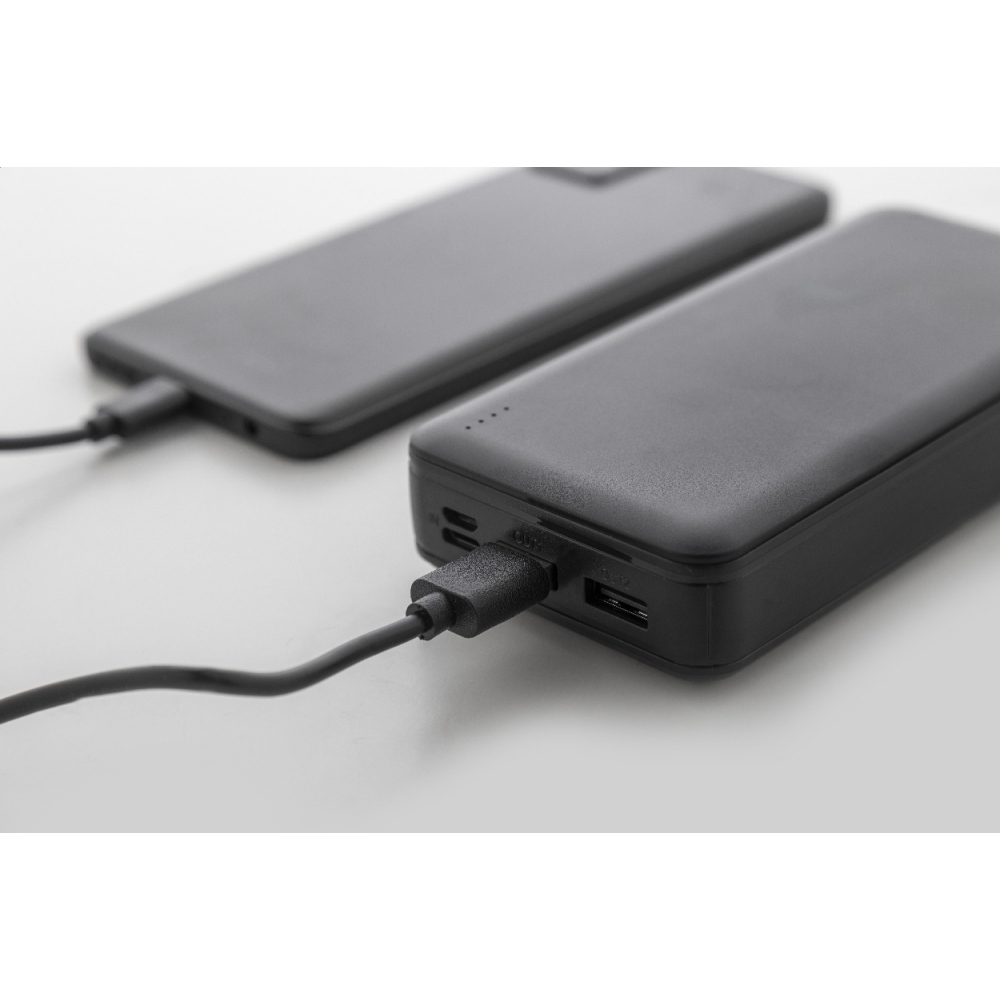 Artikel-Nr: AND864113-10Powerbank aus recyceltem ABS mit 20000 mAh Akku. Mit zwei USB- und einem USB-C-Ladeanschluss. Micro-USB- und USB-C-Eingang. Inklusive USB-Ladekabel.