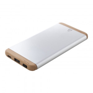 Artikel-Nr: AND864077-21Powerbank aus recyceltem Aluminium und Bambus mit 5000-mAh-Akku. Mit 1 USB- und 1 USB-C-Ladeanschluss. USB-C-Eingangsanschluss. Inkl. USB-Ladekabel.