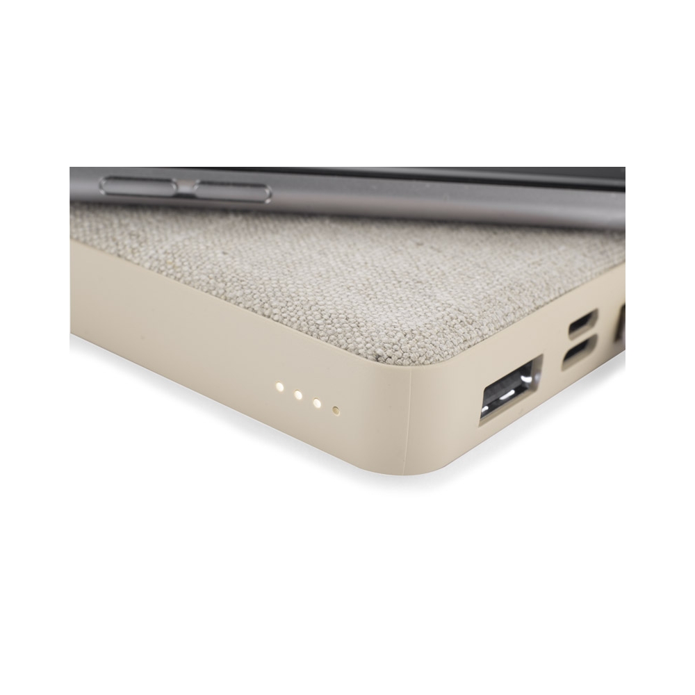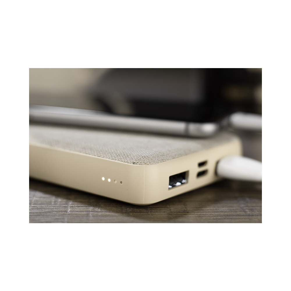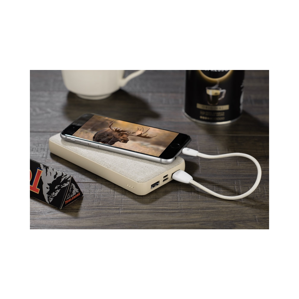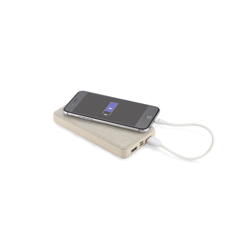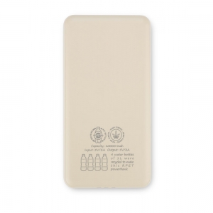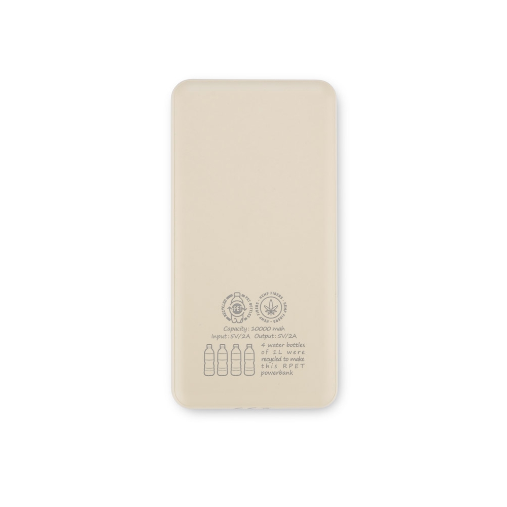 Artikel-Nr: ARD45129-17Die rPET REPPO Powerbank mit einer Kapazität von 10.000 mAh besteht aus Material aus recycelten vier 1-Liter-Flaschen und Hanffasern. Das Produkt kann über 4 Ports aufgeladen werden: 2 x USB-A, 1 x USB-C, 1 x microUSB. Technische Daten: - Eingang: 5V/2A, - Ausgang: 5V/2A. Vierstufige Ladeanzeige. Das Produkt entspricht den relevanten Richtlinien der Europäischen Union, dem CE-Zeichen und einer 1-Jahres-Garantie. Im Set ist ein Ladekabel mit Micro-USB-Anschluss enthalten. Verpackt in einem recycelten Karton mit einem Aufdruck aus Tinte auf Sojabasis.