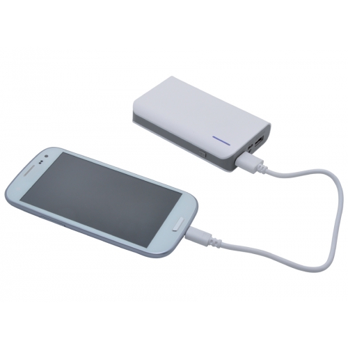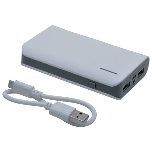 Artikel-Nr: 688PLR904Powerbank aus weißem ABS-Kunststoff. Akku-Ladung über USB. USB-Kabel inklusive. Geliefert mit Bedienungsanleitung in Französisch, Englisch und Deutsch. - Batterie-Typ: Lithium-Batterie - Akku-Kapazität: 6600mAh - Ausgangsleistung:5V/1A, 5V/2A - Eingangsspannung: 5V/1A - Ladezeit der Powerbank: 7 bis 8 Stunden