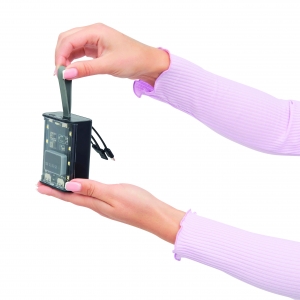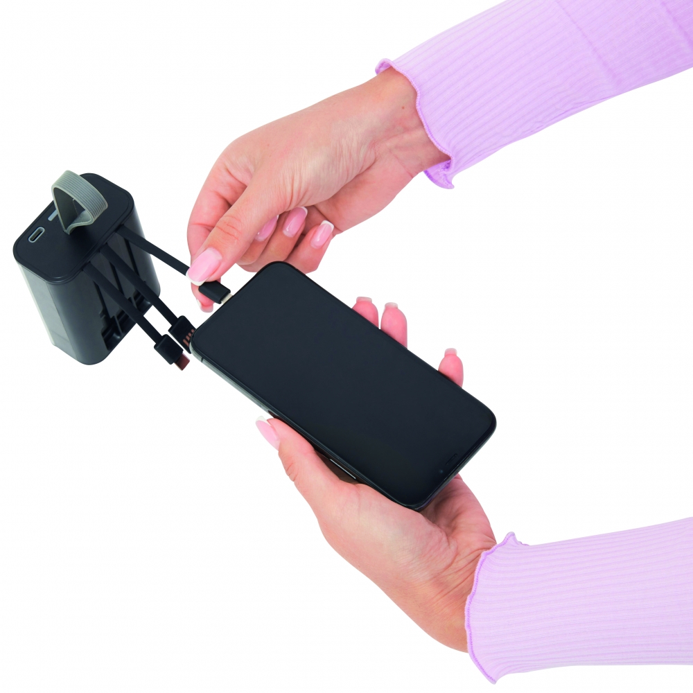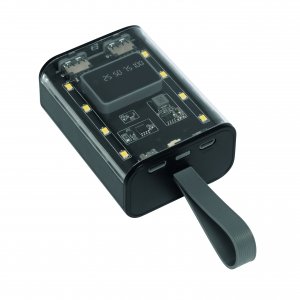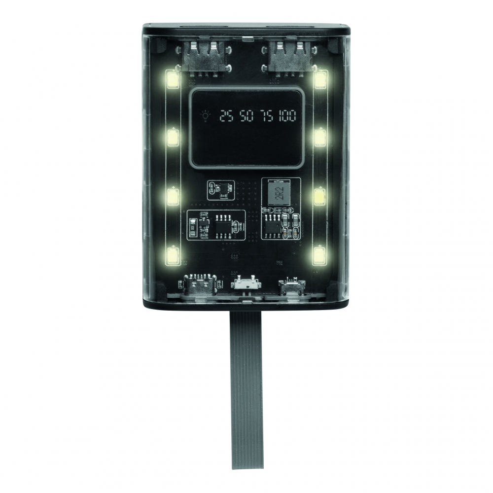 Artikel-Nr: INP58-8105023Powerbank / Taschenlampe OPEN SOURCE: Powerbank geeignet für Smartphones und USB-betriebene Geräte, inkl. 3 integrierter Ladekabel auf der Rückseite (USB Typ A (Eingang), USB Typ A, Micro-USB (Ausgang)), mit Ladestandanzeige mit beleuchteten Ziffern, Ein- und Ausschalter, je 1 USB Typ C und Micro-USB Eingang und 2 USB Typ A Ausgänge, Eingangsleistung: 5V/2A, Ausgangsleistung: 5V/2A (max.), Kapazität: 6.000 mAh, leistungsstarker Lithium-Akku, Taschenlampe mit 8 warmweißen LED, 3 Helligkeitsstufen und SOS-Blinklicht, mit Silikon-Handschlaufe, in Box