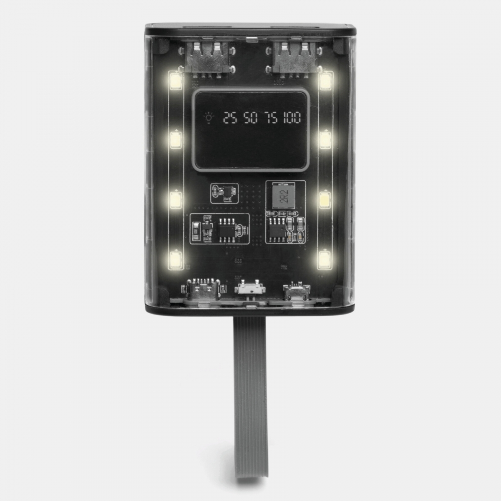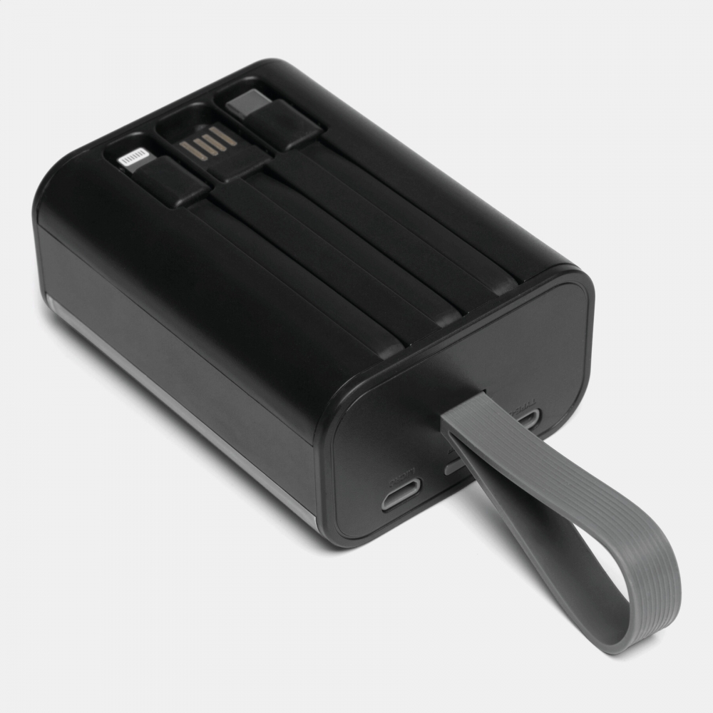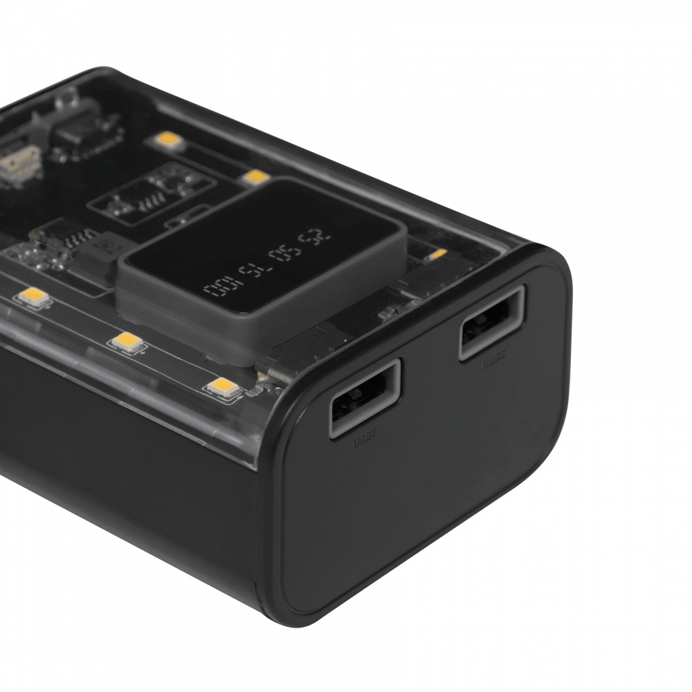 Artikel-Nr: INP58-8105023Powerbank / Taschenlampe OPEN SOURCE: Powerbank geeignet für Smartphones und USB-betriebene Geräte, inkl. 3 integrierter Ladekabel auf der Rückseite (USB Typ A (Eingang), USB Typ A, Micro-USB (Ausgang)), mit Ladestandanzeige mit beleuchteten Ziffern, Ein- und Ausschalter, je 1 USB Typ C und Micro-USB Eingang und 2 USB Typ A Ausgänge, Eingangsleistung: 5V/2A, Ausgangsleistung: 5V/2A (max.), Kapazität: 6.000 mAh, leistungsstarker Lithium-Akku, Taschenlampe mit 8 warmweißen LED, 3 Helligkeitsstufen und SOS-Blinklicht, mit Silikon-Handschlaufe, in Box