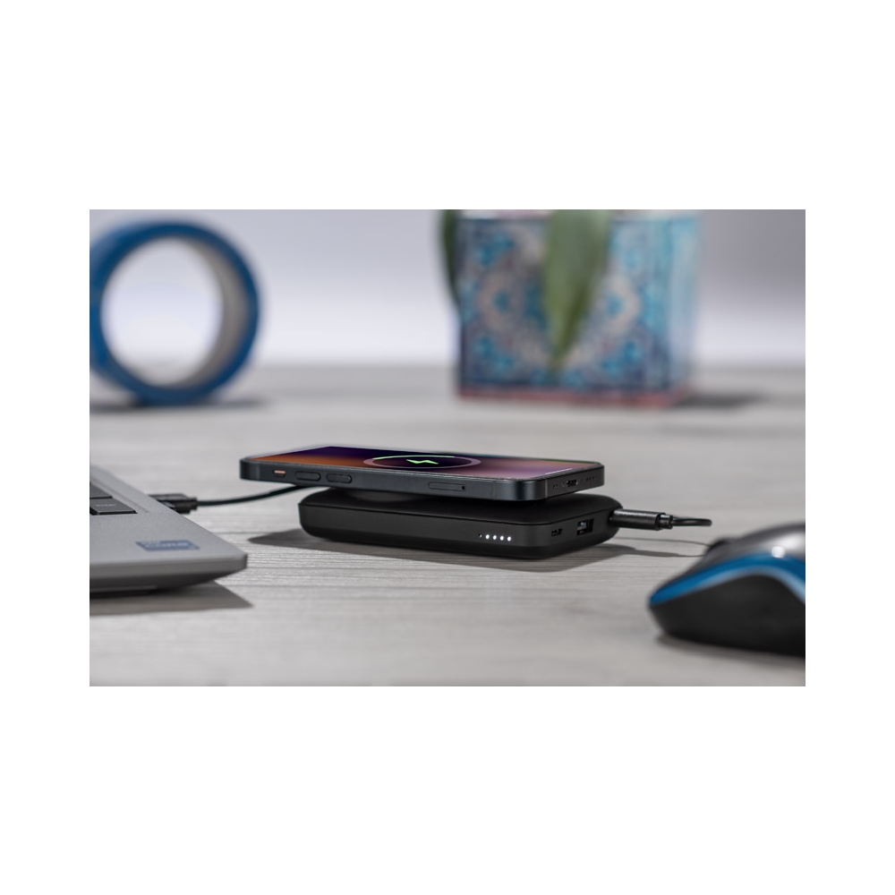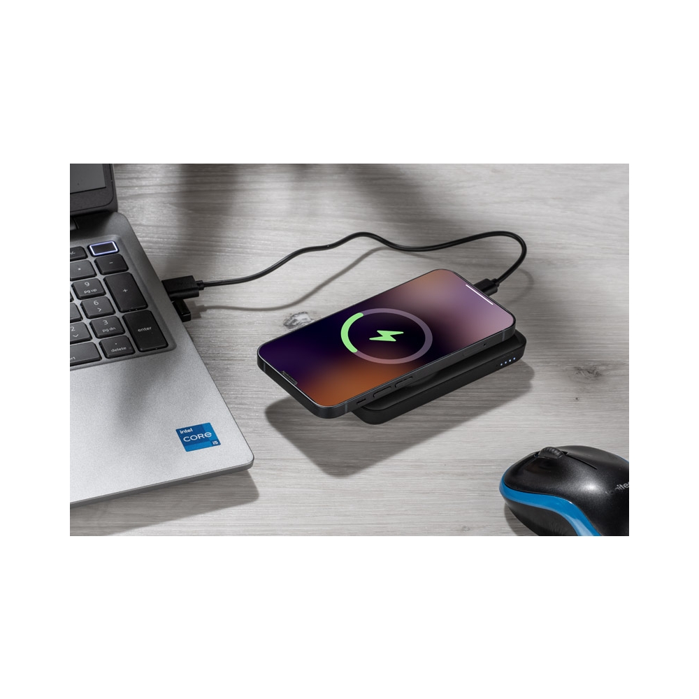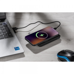 Artikel-Nr: ARD45131-02Die VELOCE Power Bank in elegantem, mattem Schwarz ist Ihre mobile Energiequelle mit einer Kapazität von 10000 mAh für zuverlässige Unterstützung in jeder Situation. Dank der magnetischen, kabellosen 5W-Ladefunktion können Sie immer sicher sein, dass Ihr Gerät aufgeladen ist. Der Typ-C-Ausgang ermöglicht das schnelle Aufladen kompatibler Geräte und macht VELOCE zu einem unverzichtbaren Reisebegleiter. Nutzen Sie außerdem den Branding-Service, um das beleuchtete Logo Ihres Kunden auf der Powerbank zu platzieren und ihr so eine einzigartige, persönliche Note zu verleihen. VELOCE ist eine Kombination aus Modernität, Leistung und Stil, mit der Sie immer für jede Herausforderung gerüstet sind. Entscheiden Sie sich für Zuverlässigkeit und Eleganz - wählen Sie VELOCE.
