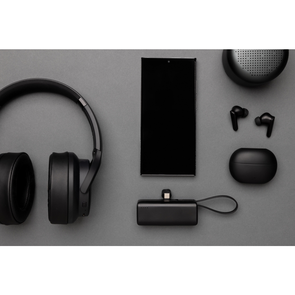 Artikel-Nr: XND3224901Tragbare Powerbank im Taschenformat, die Sie leicht mitnehmen können. Die Powerbank wird mit einem Type-C-Stecker geliefert, den Sie ganz einfach an Ihr neuestes iPhone (ab 14 ) oder Android-Telefon anschließen können, um den Ladevorgang direkt zu starten. Die 3.000mAh-Powerbank verfügt außerdem über ein integriertes USB-C-Eingangs- und Ausgangskabel, das zum Aufladen anderer USB-C-Geräte und zum Wiederaufladen der Powerbank verwendet werden kann, so brauchen keine Kabel mit sich zu führen, um diese Powerbank zu verwenden oder wieder aufzuladen. Hergestellt aus recyceltem ABS und recyceltem TPE. Gesamter recycelter Inhalt: 19% basierend auf dem Gesamtgewicht des Artikels. Die RCS-Zertifizierung gewährleistet eine vollständig zertifizierte Lieferkette der recycelten Materialien. Verpackt in FSC®-Verpackung. PVC-frei. Eingang: 5V/2.1A Ausgang 5V/2.4A.