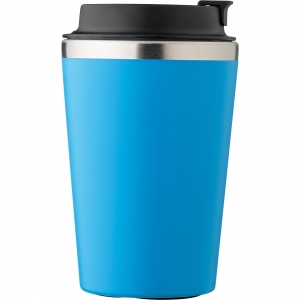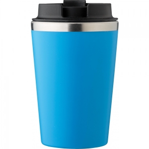 Artikel-Nr: GIV1042451005Reisebecher aus Edelstahl und PP (350 ml). Der PP-Deckel hat einen Silikonring zum Verschließen und einen Klappverschluss oben. Einzeln verpackt in einer braunen Kartonbox.