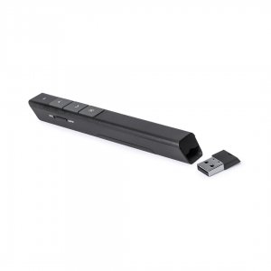 Artikel-Nr: KTO15202002000Eleganter Laserpointer der Klasse 2 mit USB-Anschluss und geschmeidigem Gehäuse. Speziell geeignet für PowerPoint- und Keynote-Präsentationen dank der seitlichen Tasten mit Vorwärts-, Pause- und Rückwärtsfunktion. Batteriebetrieben - 1 x AAA inklusive. Speziell für den Tampondruck entwickelt. Präsentiert in einer eleganten und robusten Schachtel aus schwarzem Karton, mit weichem Schaumstoff mit Stanzung im Inneren und Batteriefach.