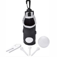 Artikel-Nr: W39810018800In diesem praktischen Beutel können Sie alle Golfaccessoires aufbewahren. Wenn Sie auf den Beutel drücken, wird ein Golfball aus dem Boden des Beutels herausspringen. Auf diese Art haben Sie immer schnellstmöglich einen Ball zur Hand. Auf der einen Seite des Beutels sind 3 hölzerne Golftees angebracht, auf der anderen Seite eine Pitchfork mit Marker aus Metall. Maße ca. ø 4 x 16 cm Farbe: schwarz