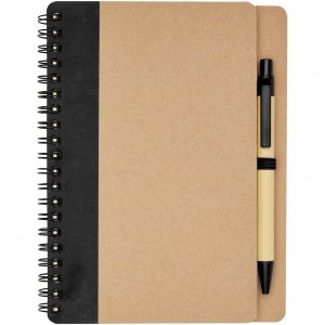 Artikel-Nr: CPO10626801Notizbuch mit Deckel aus Recyclingkarton, 60 Blatt liniertem Recyclingpapier und passendem Stift. Das Notizbuch und der Stift sind zusammen verpackt.