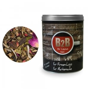 Artikel-Nr: HLSD150115700Tee als Werbegeschenk aus der YuboFiT® Tee Manufaktur. Edler Pai Mu Tan-Weißtee wird von lieblicher Himbeere umgarnt