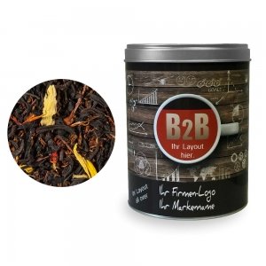 Artikel-Nr: HLSD150105615Tee als Werbegeschenk aus der YuboFiT® Tee Manufaktur. Kräftig vereint siegt das Zusammenspiel aus Rooibos- und Schwarztee mit Orangen- und Zimtgeschmack
