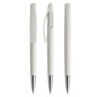 In der Ausführung mit mattem Gehäuse und satinierter Metallspitze (PMS) lieferbar in den Standardfarben schwarz und weiß, Sondergehäusefarben ab 10.000 Stück. Fünf Druckflächen für Werbeanbringungen stehen zur Verfügung. Der beidseitig bedruckbare Druckknopf kann in Farbe und Oberfläche vom Gehäuse abgesetzt werden, besonders edel wirken Kombinationen mit Druckknopf in galvanisiertem und satiniertem Silber. Das hochwertige neue FLOATING BALL® Schreibsystem sorgt für ein noch weicheres Schreibgefühl.