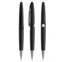 In der Ausführung mit matt lackiertem Gehäuse und satinierter Metallspitze (PVS) lieferbar in fünf Standardfarben, Sondergehäusefarben ab 10.000 Stück. Vier Druckflächen für Werbeanbringungen stehen zur Verfügung. Der Druckknopf lässt sich farblich vom Gehäuse absetzen. Das hochwertige neue FLOATING BALL® Schreibsystem sorgt für ein noch weicheres Schreibgefühl.