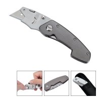 Artikel-Nr: 57382470SI-SIDas Klapp-Cuttermesser überzeugt mit seiner hochwertigen Ausführung und sicheren Handhabung. Durch das Klappsystem kann die Trapezklinge des Cutters einfach und sicher aufbewahrt und der Cutter beruhigt in die Tasche gesteckt werden. Durch den Verschlussmechanismus wird die Klinge im ausgeklappten Zustand arretiert und garantiert somit eine sichere Handhabung beim Schneiden unterschiedlichster Materialien. Die handelsüblichen Trapezklingen sind mit dem Schnellverschluss schnell und sicher auszutauschen. Der ausklappbare Klingenhalter ist aus rostfreiem Edelstahl 420, der Griff aus eloxiertem Aluminium gefertigt. Eine Trapezklinge und Nylon-Gürteltasche inkl.
