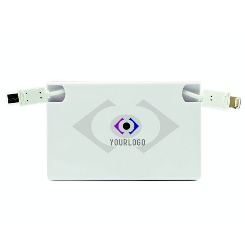 Artikel-Nr: 3713149Credit card sized power bank with large print area up to 4 colour process. Includes 8 pin connector (iPhone 5) and micro connectors for most other smart phones that store away neatly inside the unit. 1020 mAh battery capacity. Top quality black gift box makes for a promotional gift with style. Optional 30 pin connector (iPhone 4) available on request.