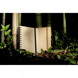 Artikel-Nr: PST93287-104A5 Notizbuch mit Ringen, fester Einband, aus Zuckerrohrpapier (80% zuckerrohr). Enthält 160 unbedruckte Seiten aus Zuckerrohrpapier (80 % zuckerrohr) (90 g / m²) und ein Gummiband zum Schließen des Notizbuchs. 147 x 214 mm