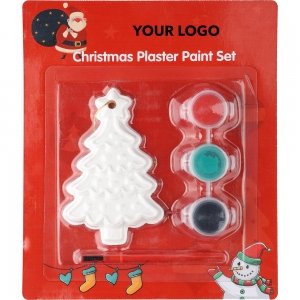 Artikel-Nr: GIV1271556009PS Weihnachtsbaum-Malset mit einer Gipsfigur, drei Acrylfarben und einem Pinsel. Mit Loch und Polyesterkordel zum Aufhängen als Christbaumschmuck. Ungefähre Zeitaufwendung: 30-60 Minuten. Pro Stück verpackt.