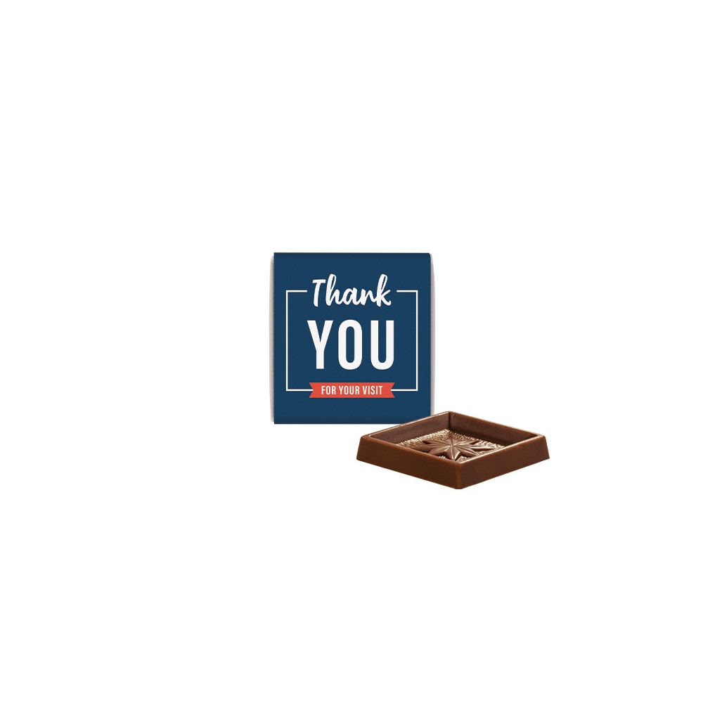 Artikel-Nr: PUC1056.00002Quadrat Täfelchen Täfelchen in Pergaminpapier mit Papierbanderole, individuell bedruckt. Inhalt: 1 Täfelchen Alpenvollmilchschokolade in feinster Qualität, eingewickelt in Pergaminpapier (kann über die Papiertonne entsorgt werden), 5 g. Saisonartikel - solange der Vorrat reicht!