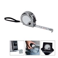 Artikel-Nr: 57385020TI-SI3 Meter Maßband mit Punktmagneten. Dieses Maßband findet Verwendung vom Hobby-Bastler bis zum Profi-Handwerker. Das verchromte ABS Kunststoffgehäuse ist äußerst stoßfest und das rostfreie Edelstahlband mit Spezialbeschichtung verfügt über eine Meter- / Inch-Skala. Die Feststell-, Stopp- und Rücklaufautomatik sowie der Gürtelclip am Gehäuse erleichtern den Gebrauch. Mit den beiden starken Punktmagneten am Bandanfangswinkel kann das Maßband an metallischen Oberflächen zum Messen fixiert werden. Hohe Messgenauigkeit nach Euro-Norm Kl. II. Hochwertige Karton-Geschenkverpackung inkl.
