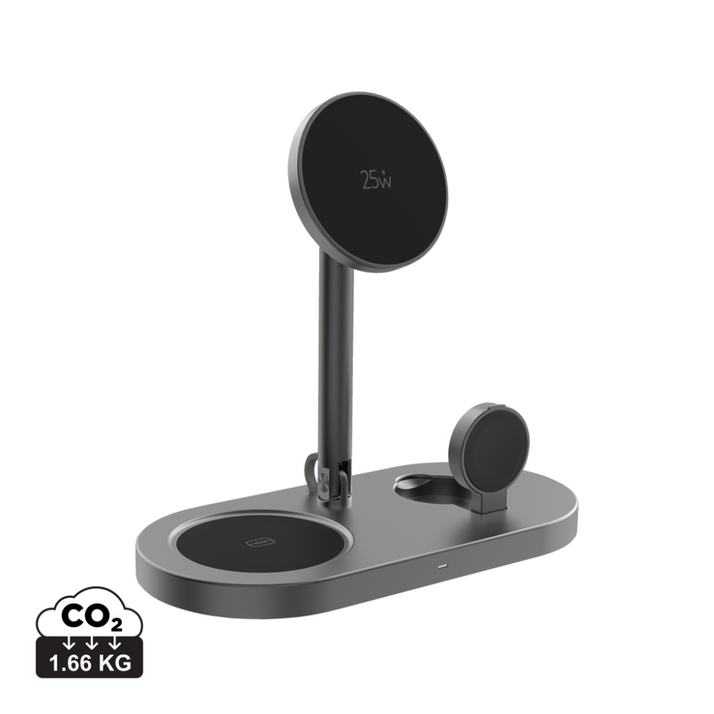 Artikel-Nr: XND3091402Erleben Sie ultraschnelles magnetisches 25W-Wireless-Charging mit Quantum Ultra-Fast 3-in-1, dem eleganten Tischladegerät, das Ihr Smartphone, Ihre Apple Watch / Samsung Watch und Ihre Ohrhörer gleichzeitig mit Strom versorgt. Sein effizientes System sorgt für stabiles Laden aller Geräte und wird durch fortschrittliche Sicherheits- und Temperaturschutzfunktionen für zuverlässigen täglichen Gebrauch unterstützt. Hergestellt aus RCS-zertifiziertem recyceltem ABS, recyceltem Aluminium und recyceltem PC. RCS (Recycled Claim Standard) überprüft den Recyclinganteil entlang der gesamten Lieferkette. Gesamtanteil an recycelten Materialien: 47% bezogen auf das Gesamtgewicht des Artikels. Der USB-C-Eingang sorgt für eine konstante Energieversorgung für eine optimale Leistung von 25W. Der Artikel und das Zubehör sind PVC-frei und in FSC®-Mix-Kraftverpackungen verpackt. Inklusive einem 120cm langen USB-C-zu-USB-C-Kabel aus RCS-zertifiziert recyceltem TPE. Minimum-Input: 9V / A für optimale Nutzung.