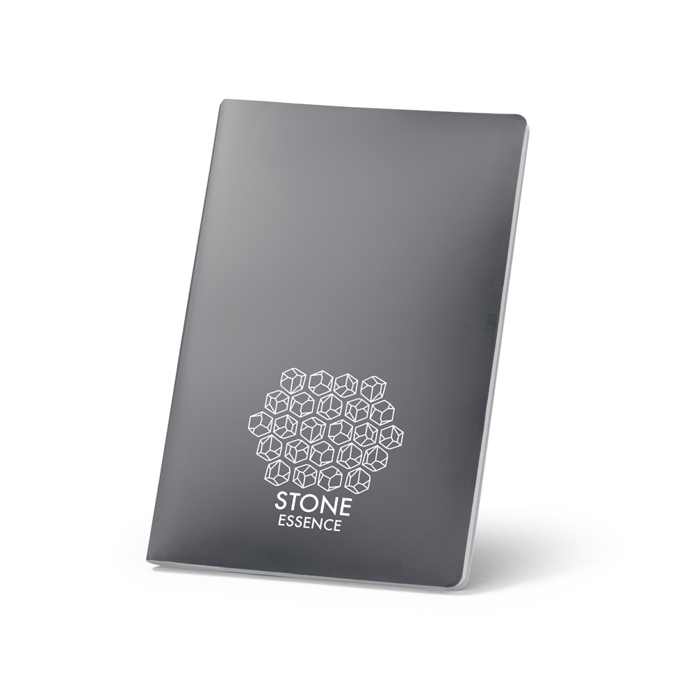 Artikel-Nr: PST93283-113Notizbuch A5 (620g / m²) mit Softcover aus 100% Steinpapier (wasserabweisend). Mit 128 unlinierten Seiten (120g / m²). 140 x 210 mm