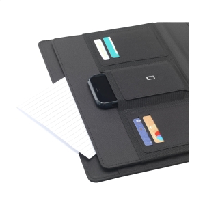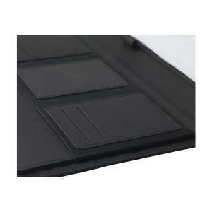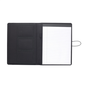 Artikel-Nr: CLP266490-001Moderne Schreibmappe / Dokumentenmappe aus RPET-Material im A4-Format. Ausgestattet mit mehreren Einsteckfächern, darunter ein separates Fach zur Aufbewahrung eines Mobiltelefons, sowie einer Stiftschlaufe. Inkl. Schreibblock mit 20 Blatt FSC zertifiziertem, weißem, liniertem Papier (70 g / m²). RCS-certified. Total recycled material: 6%.