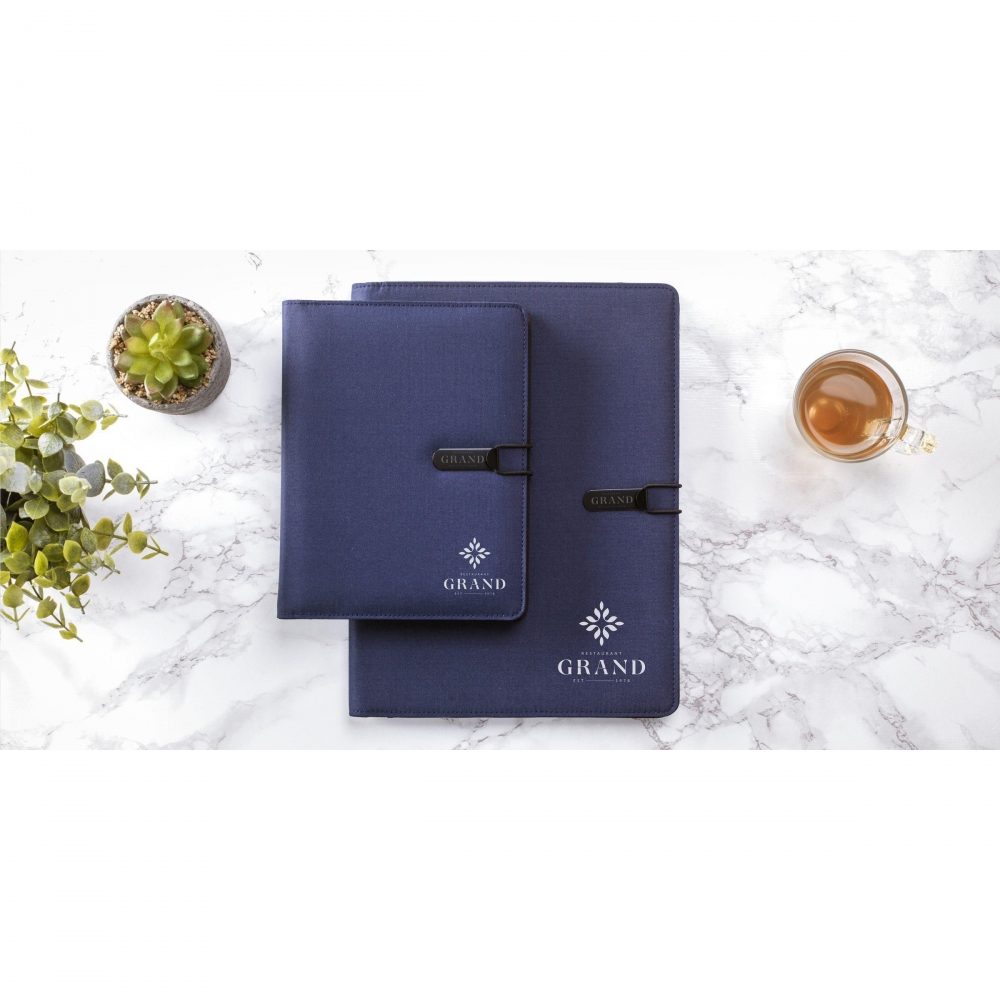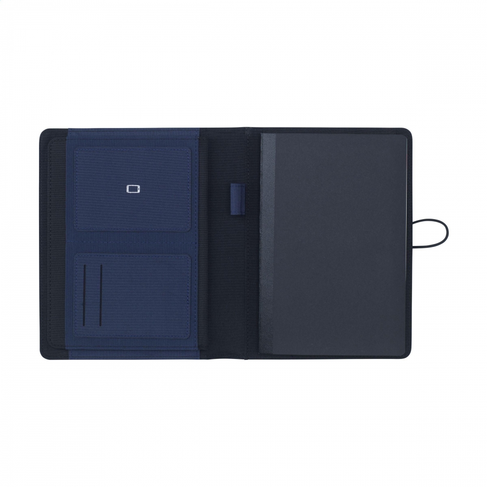 Artikel-Nr: CLP266494-005Moderne Schreibmappe/Dokumentenmappe aus RPET-Material im A5-Format. Ausgestattet mit mehreren Einsteckfächern, darunter ein separates Fach für ein Mobiltelefon, 2 Kartenfächer und eine Stiftschlaufe.Inkl. Notizbuch mit ca. 64 Blatt FSC zertifiziertem, cremefarbenem, liniertem Papier (70 g/m²).