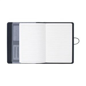 Artikel-Nr: CLP649490WoW! Moderne Schreibmappe / Dokumentenmappe aus RPET-Material im A5-Format. Ausgestattet mit mehreren Einsteckfächern, darunter ein separates Fach für ein Mobiltelefon, 2 Kartenfächer und eine Stiftschlaufe. Inkl. Notizbuch mit ca. 64 Blatt FSC zertifiziertem, cremefarbenem, liniertem Papier (70 g / m²).
