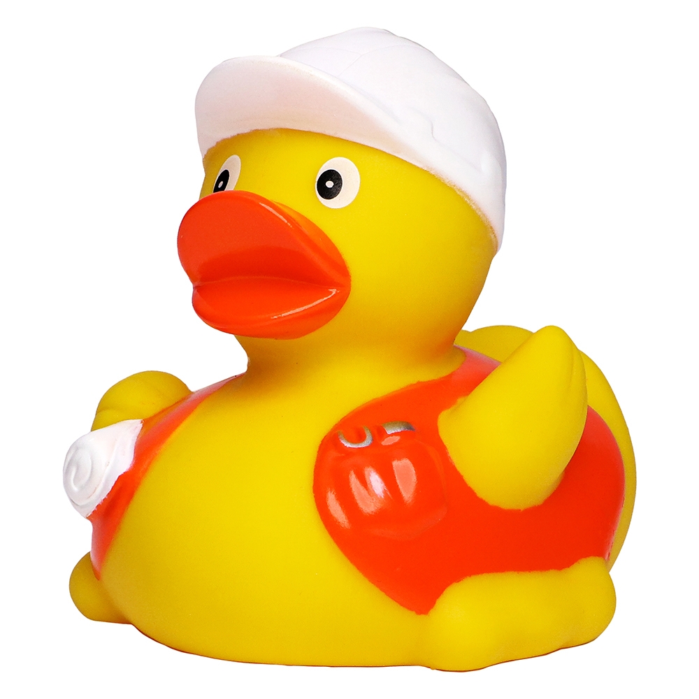 Artikel-Nr: GUT31039Mit Bauplänen unterm Arm und orangefarbener Signalweste sorgt diese Ente dafür, dass bei Ihrem Bau alles richtig läuft. Aber sie ist nicht nur Bauleiter – in der Tasche befindet sich auch noch Werkzeug und die Ente ist sich nicht zu schade, dieses auch zu benutzen! Mit unserem Bauarbeiter wird nichts krumm und schief, und an die Sicherheit ist natürlich auch gedacht: Der weiße Schutzhelm ist ein Muss und rundet die Arbeiterkluft perfekt ab.
