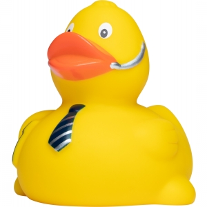 Artikel-Nr: GUT31056Diese Ente mit Schlips und Aktentasche macht auch in jeder Badewanne einen seriösen Eindruck und hat, selbst bei einem noch so entspannten Bad, immer nur die Arbeit im Kopf. Fleißig und gewissenhaft erfüllt unsere Quietsche-Ente Business jede Aufgabe.