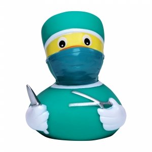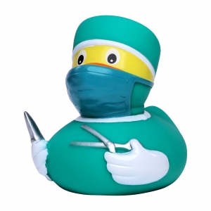 Artikel-Nr: GUT31180Jeder noch so komplizierte Eingriff, von der Entfernung eines Hühnerauges bis hin zur Herztransplantation, wird von dieser Ente gemeistert! Wenn es um Leben und Tod geht, ist unser Chirurg mit grünem Kittel der, dem Sie vertrauen können!