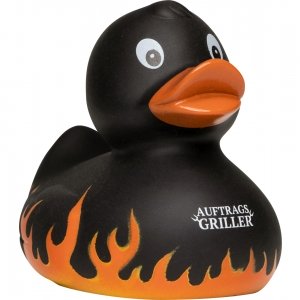 Quietsche-Ente Flammen mit Slogan Auftragsgriller