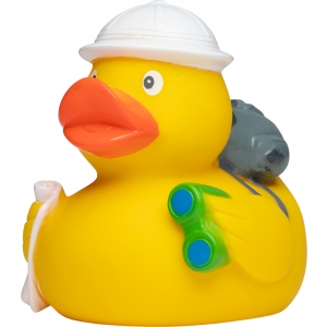 Artikel-Nr: GUT31073Dieser kleine Weltenbummler ist ausgestattet für die abenteuerlichsten Reisen: mit Landkarte, Fernglas, Tropenhelm und Rucksack. So kann die Ente auch die abgelegensten Ecken Ihrer Badewanne zu bereisen.