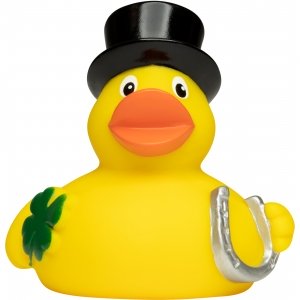 Artikel-Nr: GUT31194Hier kommt ein wahrer Glücksvogel. Er bringt nicht nur jedem ein strahlendes Lächeln sondern hat für die Extraportion Glück gleich ein Hufeisen und ein vierblättriges Kleeblatt dabei. Der schicke schwarze Zylinder erinnert an einen Schornsteinfeger, die Personifizierung des Glücks.