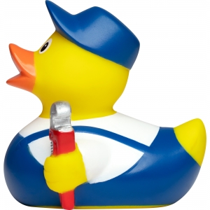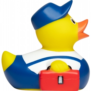 Artikel-Nr: GUT31244Die Quietsche-Ente Klempner bringt alles mit, was zum Anpacken benötigt wird. Cool mit Latzhose, Cap, Werkzeugkoffer und Zange macht sie als Give away oder Deko im Betrieb richtig was her.