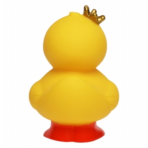 Artikel-Nr: GUT31166Das stehende Entlein mit dezentem goldenen Krönlein ist ein besonders niedliches Exemplar der Gattung der Badeenten. Im klassischen gelben Gefieder und mit großen Kulleraugen gewinnt es jeden für sich. Auf den orangen Füßchen geht es im Watschelgang in Ihr Herz und Badezimmer. Mit dem separat erhältlichen Schwimmring ist die Quietsche-Ente "König, stehend" bereit für eine Schwimmrunde.