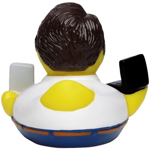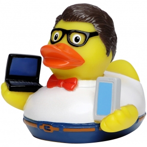 Artikel-Nr: GUT31284Big Duck Theorie? - Die Quietsche-Ente Nerd macht nicht nur IT Experten und Gamern große Freude. Ab jetzt kann das Notebook quasi mit in die Wanne, denn die qualitativ hochwertige Quietsche-Ente Nerd kommt mit passenden Details wie Notebook, Tablet, Brille und Businessoutfit daher. Sympathischer Markenbotschafter mit Potenzial zum Sammlerobjekt, der auch gerne mal in der Wanne seine Runden zieht.