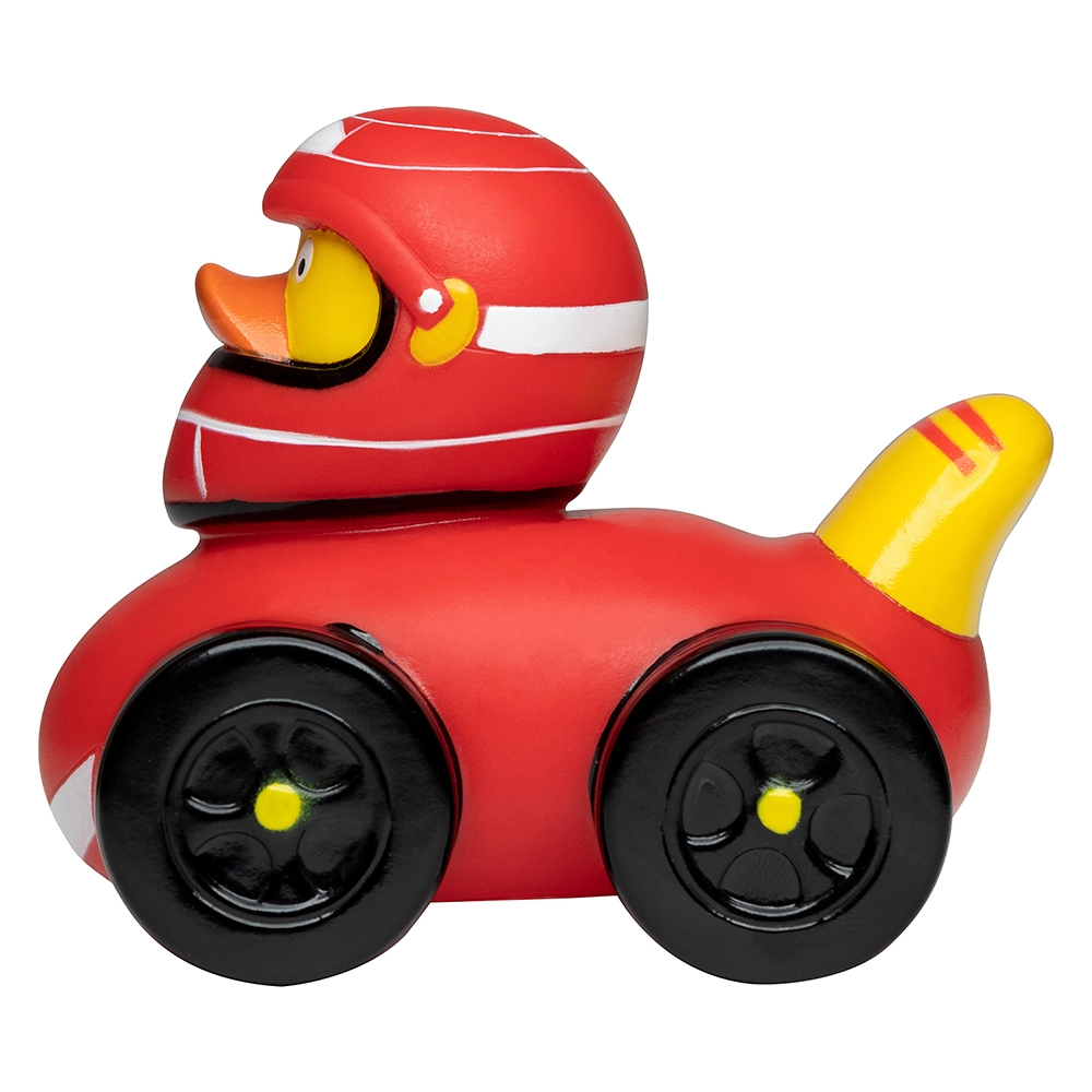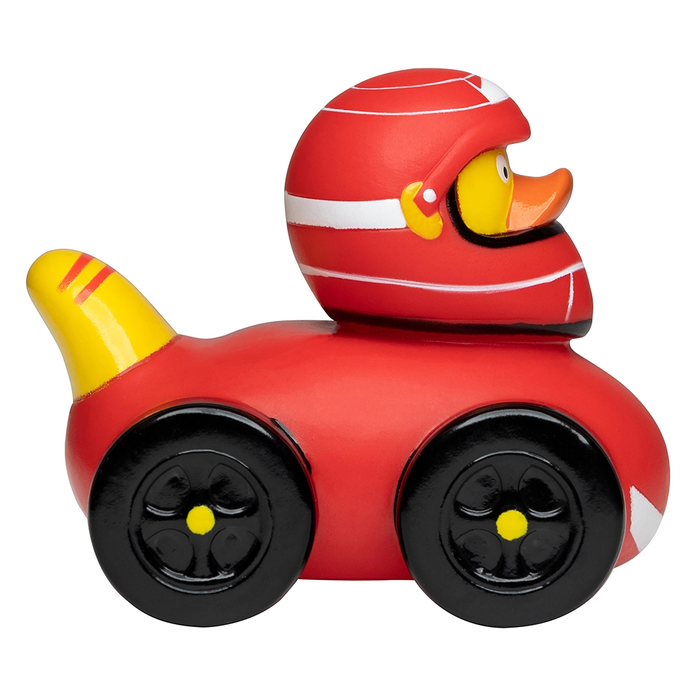 Artikel-Nr: GUT31036Unsere Race-Ente sitzt in einem roten Flitzer, die vier schwarzen Reifen bringen sie ganz ohne Boxenstopp in Bestzeit durch Ihr Badezimmer und natürlich darf auch der obligatorische rote Helm nicht fehlen. Diese Ente ist nicht nur erfolgreich auf jeder Rennstrecke, sondern auch unglaublich dekorativ.