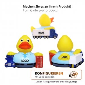 Artikel-Nr: GUT31235Quietsche-Ente Spediteur ist nichts zu schwer! Mit Brummi unterm Arm, Krawatte und schickem Hemd führt dieses Entchen vielleicht die kleinste Spedition der Welt. Aber das eben zeichnet Ihn aus, für die Großen perfekt werben zu können. Als Give a way für die Kunden oder Schreibtischhocker – auf diese Schnabels® Ente mit Geschmackmusterschutz kann man zählen.