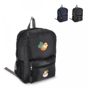 Artikel-Nr: ART95363N0010Leichter Rucksack aus recyceltem 190T-PET. Mit Reißverschlusstasche vorne, verstellbaren Schultergurten und einer seitlichen Netztasche für eine Flasche, einen Regenschirm oder andere wichtige Utensilien. Lässt sich klein zusammenfalten – ideal für Tagesausflüge auf Reisen.