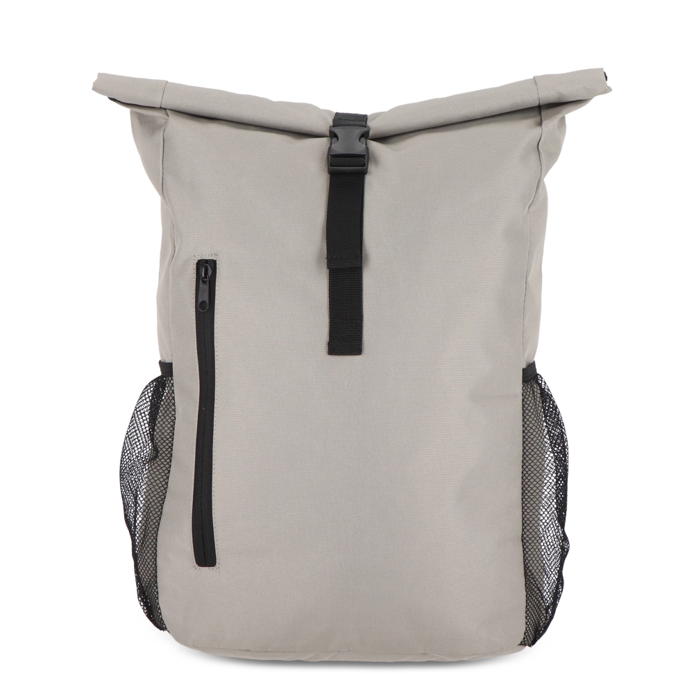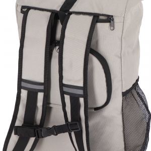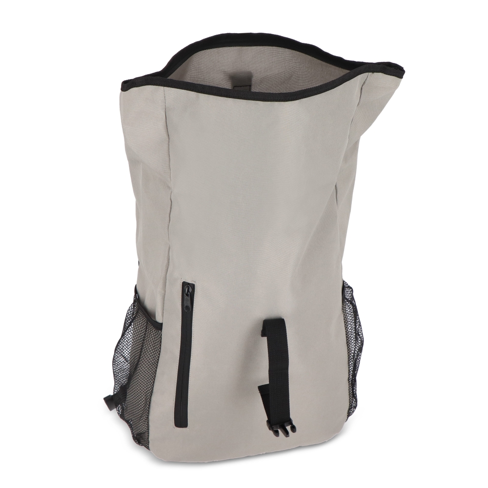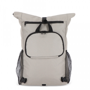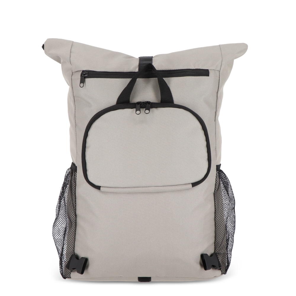 Artikel-Nr: ART95351N0061Diese Fahrradtasche im trendigen Rolltop-Design ist aus recyceltem PET hergestellt. Sie verfügt über eine Reißverschlusstasche oben und eine Vordertasche, einen Griff oben, verstellbare, gepolsterte, abnehmbare Schultergurte und zwei Clips, um die Tasche beim Radfahren am Fahrrad zu befestigen. Die beiden seitlichen Netztaschen sind ideal für Wasserflaschen oder Regenschirme.